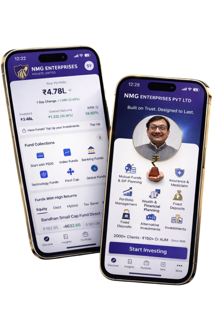 NMG Enterprises Pvt. Ltd. helps you build long-term financial stability through structured investment planning, mutual funds, SIPs, and insurance solutions — guided by transparency, discipline, and expert advice.